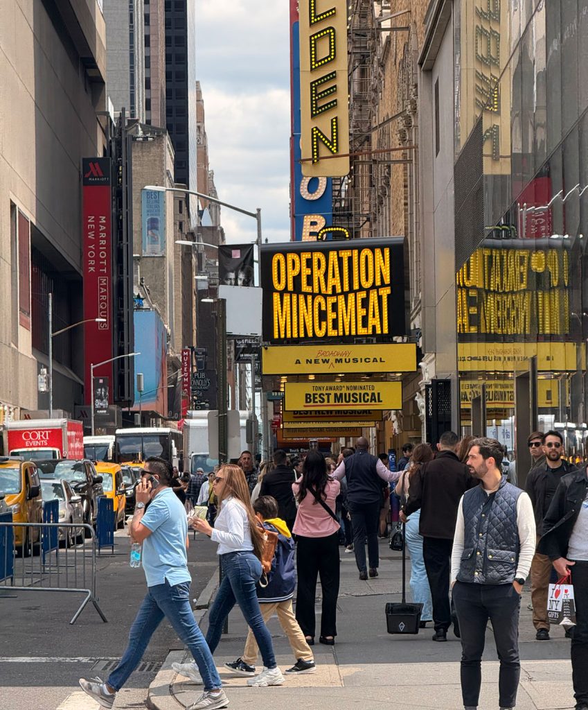 We started our Sunday early with a trip uptown to Barney Greengrass on the west side. Their bagels are famous for a reason, and the experience lived up to the hype. Later in the day, we met up with our son again to watch Operation Mincemeat at the Golden Theatre. The musical was clever, fun, and featured excellent performances from a small cast of five.